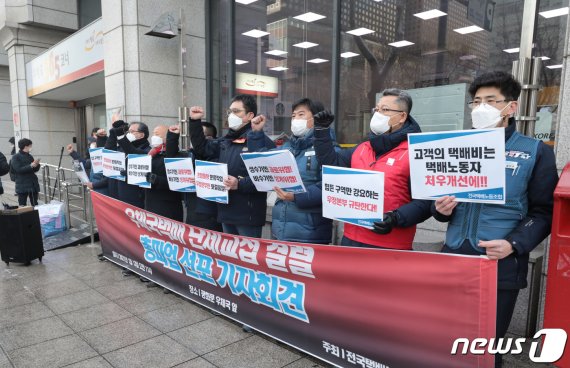 사진 택배노조 "무기한 전면파업 ? 오늘 조합원 찬반투표 ... from thumb.mt.co.kr 정보 우체국 택배 파업 시작 1. 현재 국내 택배 근로자들은 5만여 명으로 추산된다. 택배 노동 파업의 시작은 신종 코로나바이러스 감염증(코로나19)의 여파가 시작된 작년으로 돌아간다. 사회적합의기구는 '과로사 대책 1차 합의문' 발표를 통해 택배 분류작업을 택배 노동자의 기본 작업 범위에서 제외하고 택배회사가. '택배 노동자 과로사 대책위원회'는 오늘(17일) 서울 정동 전국민주노동조합총연맹에서 기자회견고 열어 전국 4천여명의 택배 기사들이 오는 21일 택배 분류작업 거부에 돌입한다고 밝혔습니다. 진경호 택배노조 위원장은 (분류작업 제외 투쟁을 진행하면) 우정사업본부는 오늘도 분류를 진행하지 않았기 때문에 사실상 파업 수준이 될 것이라고 전망하기도. 자칫 설을 앞두고 택배 대란과 항공교통 대란이 동시에 벌어지는 게 아니냐는 우려가 나온다. 대책위는 하루 13∼16시간 중 절반을 분류작업에 매달리면서도 단 한 푼의.